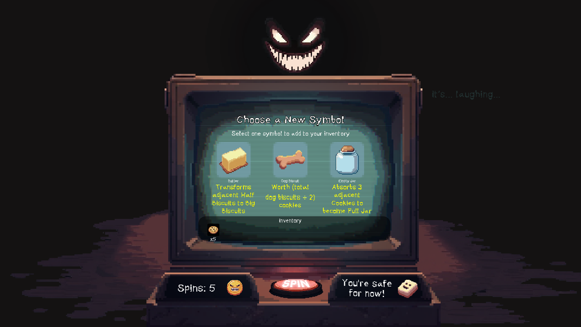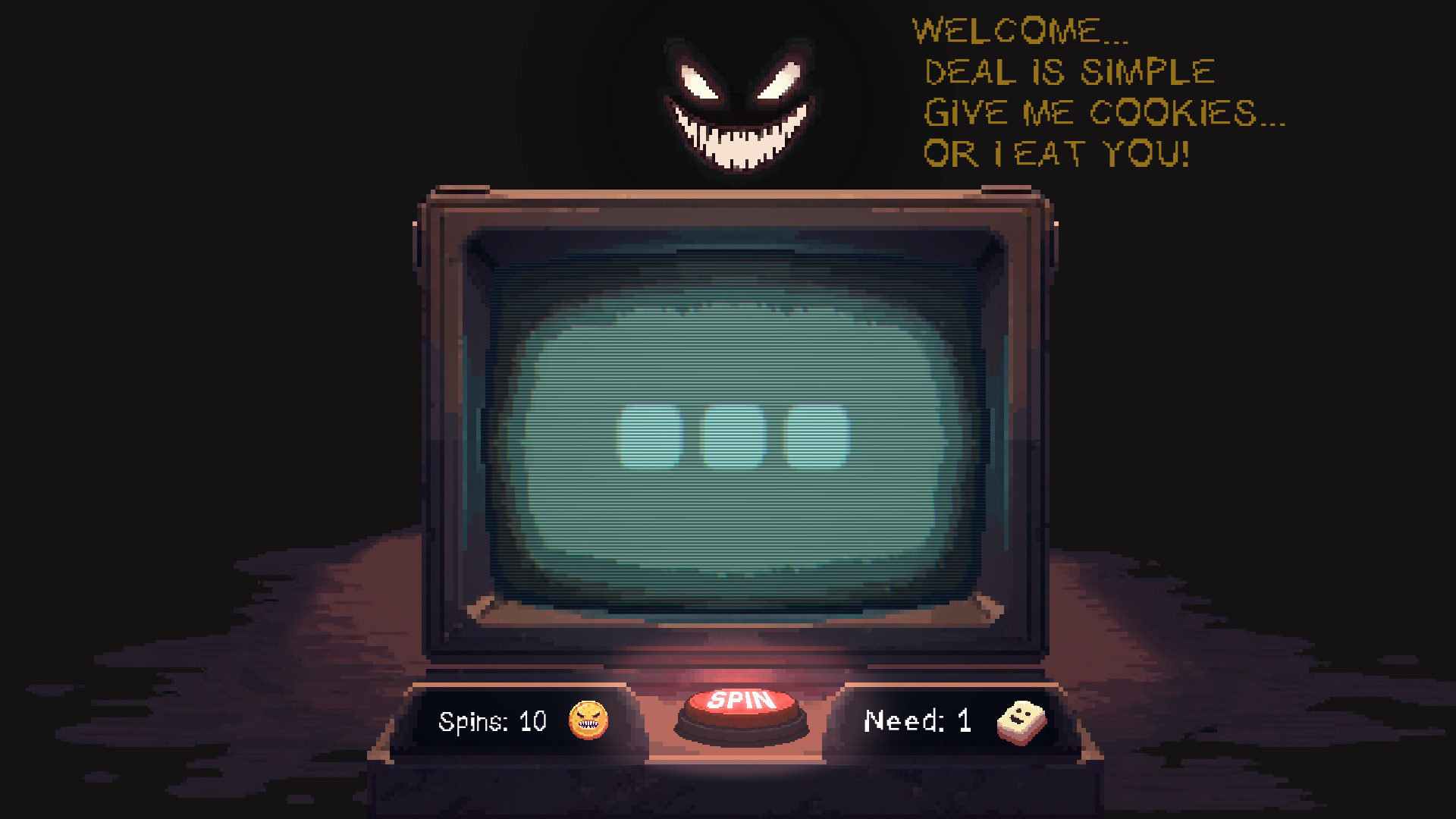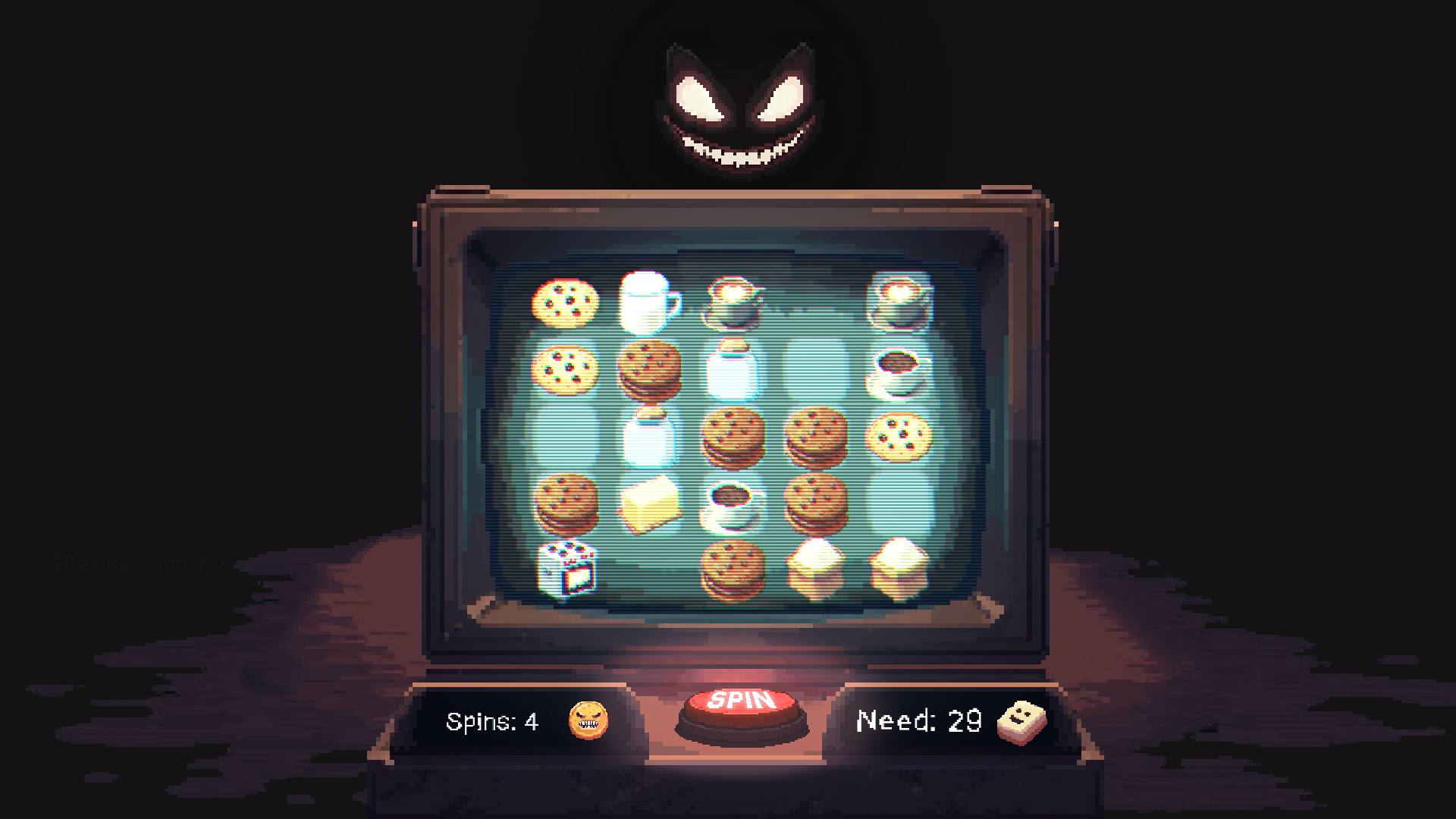 WYST: Won’t You Stay for Tea? is a slot builder horror game where a monstrous host forces you to play its cursed slot machine. Each spin feeds its hunger. Fail, and you’re devoured like all the others before you.